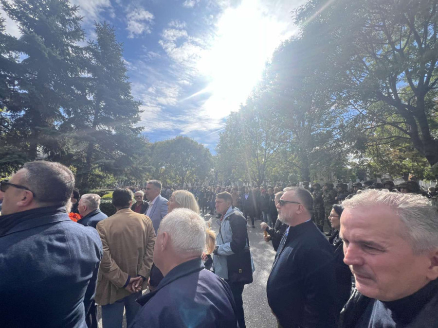 Ispred kapele na Novom groblju već se okupilo nekoliko stotina ljudi, a postrojen je i počasni vod Vojske Srbije.