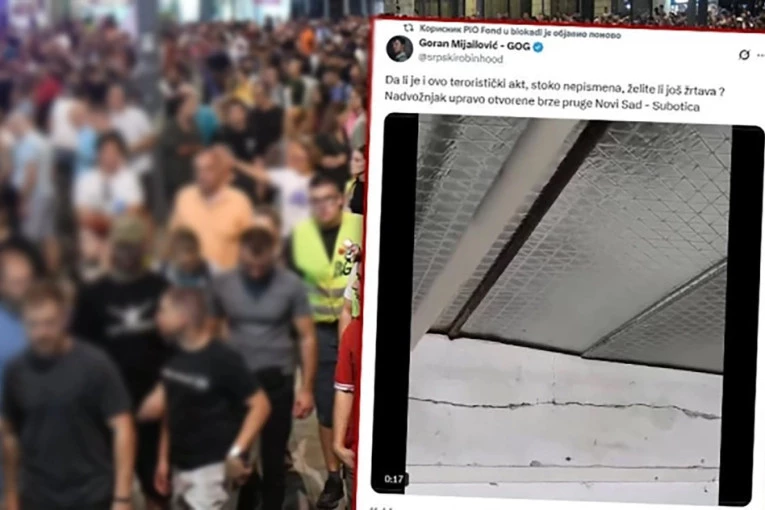 Naime, blokaderi su sada na društvenoj mreži Iks počeli da dele snimak na kom se vidi kako navodno puca brza pruga Novi Sad - Subotica. Na sve to je jedan od najglasnijih zgubidana na Iksu, blokader koji se predstavlja kao Goran Mijailović, napisao uz jeziv video-zapis da je u pitanju "nadvožnjak na upravo otvorenoj pruzi".