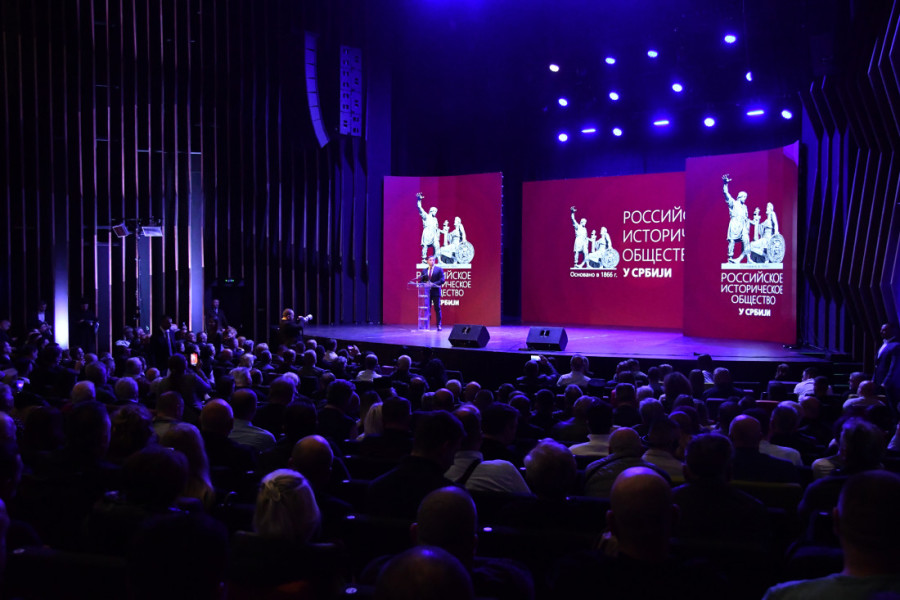 Okupljene je iz Moskve pozdravio i predsednik Ruskog istorijskog društva i direktor Spoljne obaveštajne službe Ruske Federacije Sergej Nariškin koji je poručio da Rusija ceni nezavisni kurs Beograda koji je pod ogromnim pritiskom Brisela.
