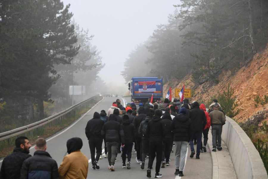 Grupa od 60 Srba iz AP Kosova i Metohije krenula je danas peške ka Novom Sadu da podrži predsednika Srbije Aleksandra Vučića i veliki narodni skup protiv blokada.