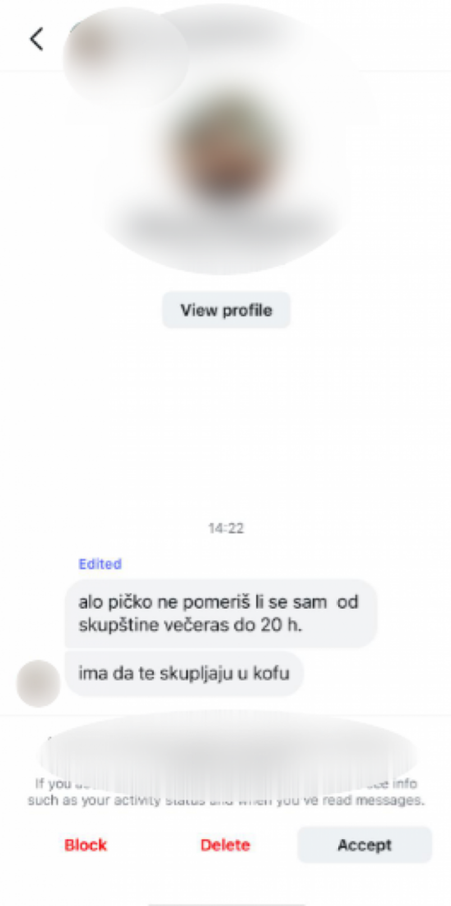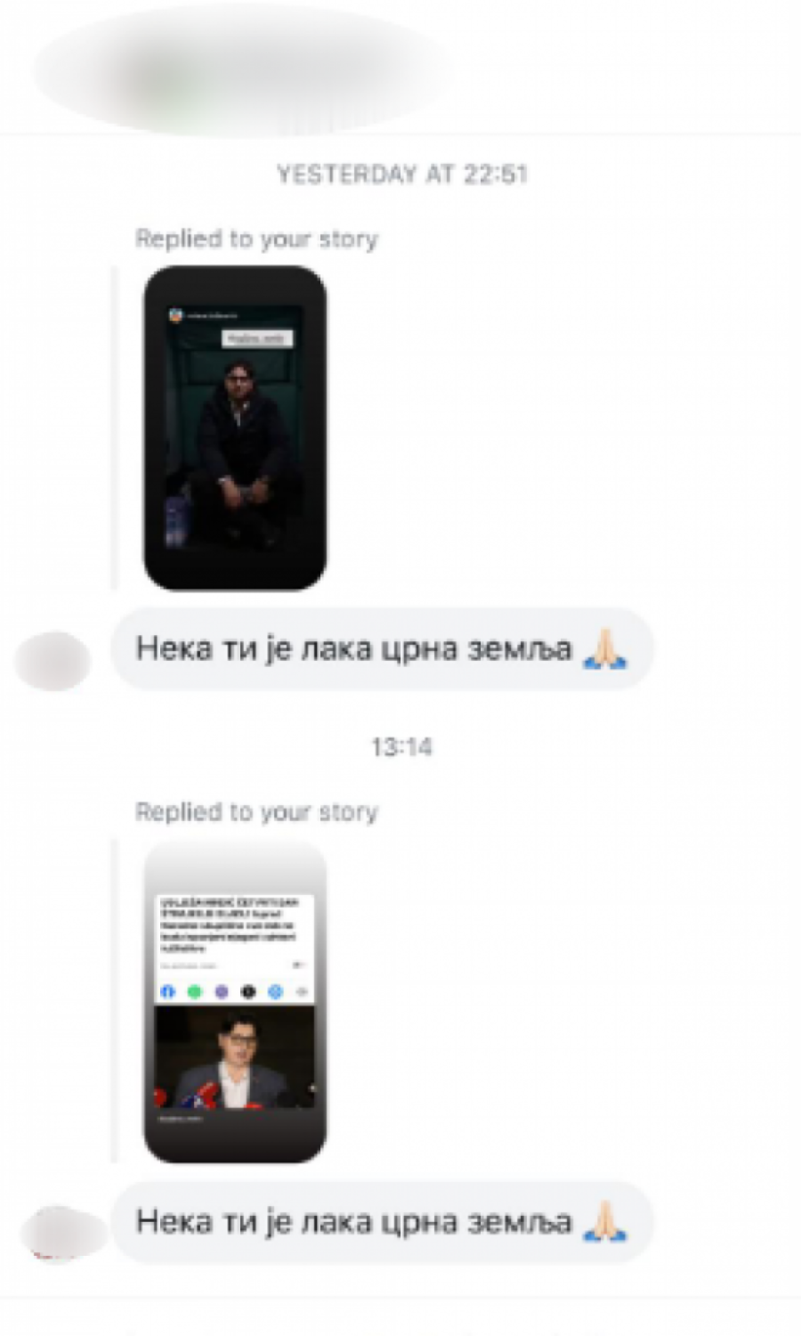 Sa nekoliko profila na društvenoj mreži Instagram Mrdiću su direktno upućene ozbiljne pretnje po život ukoliko se "večeras do 20 časova ne pomeri od Skupštine".