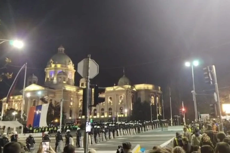 Ispred Narodne skupštine večeras - dve Srbije.