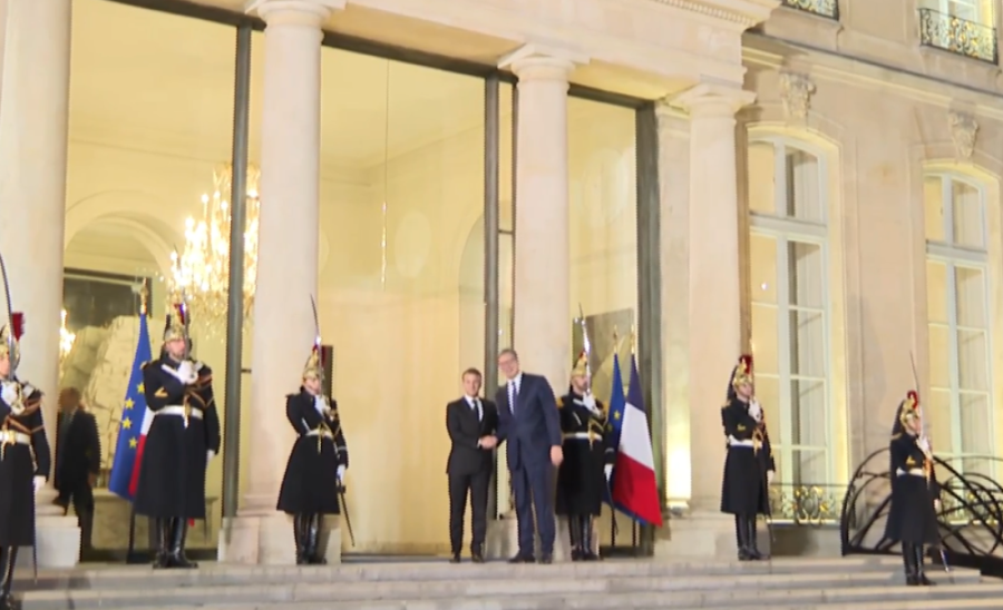 Makron je za Vučića priredio svečani doček u Jelisejskoj palati. Ispred palate na dočeku su bili i pripadnici francuske garde. Vučić i Makron su se prilikom susreta srdačno zagrlili. U čast Vučića Makron je pripremio i radnu večeru.