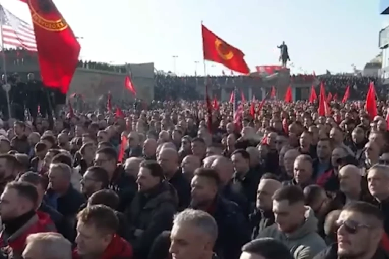 Na Trgu Skenderbeg u Skoplju danas je održan protest u znak podrške bivšim liderima tzv. OVK kojima se sudi u Hagu za ratne zločine počinjene na Kosovu i Metohiji. Na skupu u centru glavnog grada Severne Makedonije okupili su se Albanci iz te zemlje, iz Albanije i sa Kosova i Metohije kako bi zahtevali oslobađanje optuženih lidera tzv. OVK Hašima Tačija, Kadrija Veseljija, Jakupa Krasnićija i Redžepa Seljimija za koje navode da su "nepravedno optuženi".