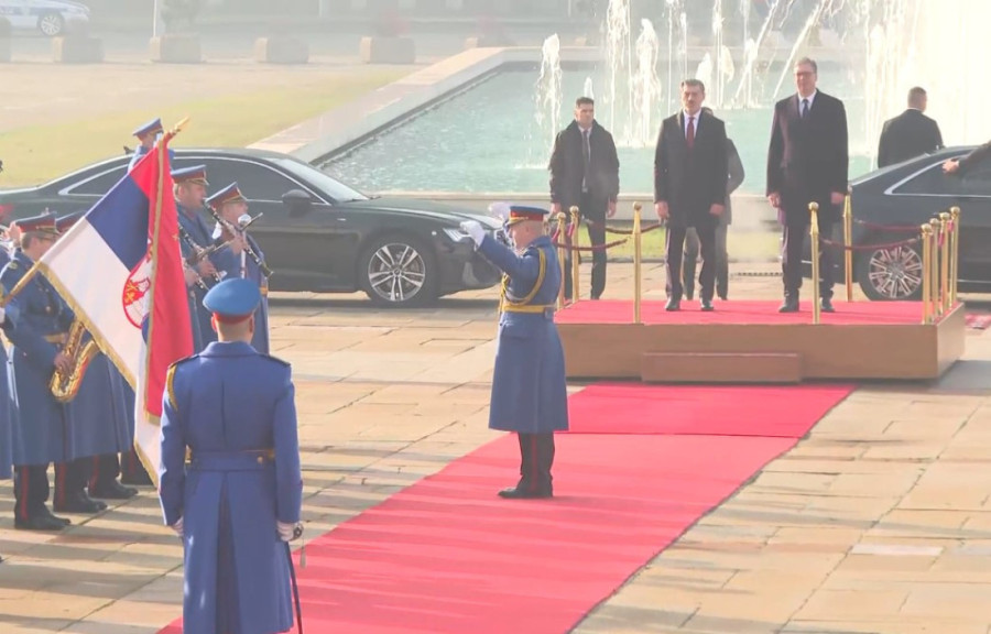 Prethodno je predsednik Srbije Aleksandar Vučić dočekao ispred Palate Srbija, uz najviše državne počasti, predsednika Gruzije Mihaila Kavelašvilija, koji boravi u zvaničnoj poseti našoj zemlji. Predsedniku Gruzije priređen je svečani doček, uz intoniranje himni dveju zemalja i počasni stroj Garde Vojske Srbije.