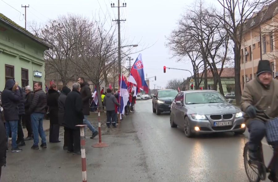 Veliki broj građana Bačkog Petrovca došao je da dočeka predsednike Slovačke i Srbije. Meštani su nosili barjake sa zastavama Srbije i Slovačke.