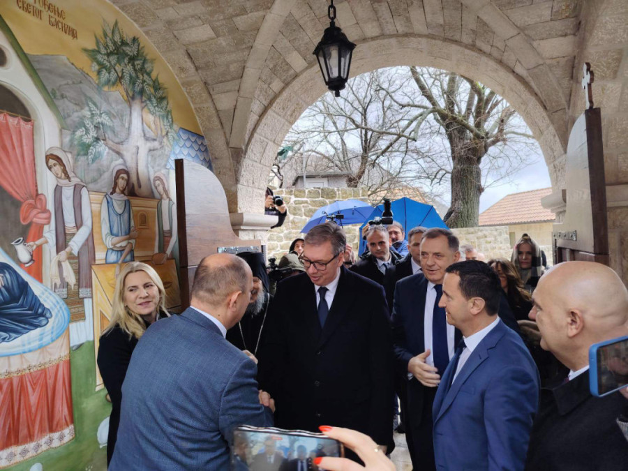 Predsednik Srbije stigao je u Mrkonjiće, rodno selo Svetog Vasilija Tvrdoškog i Ostroškog, gde je obišao duhovni centar čiju izgradnju jednim delom finansira i Srbija.