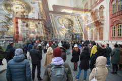 Ispred kolone blokadera teatralno su išle dve devojke, od kojih je jedna nosila žito, a druga slavski kolač. Pred Hram Sv. Save stigli su u mrkli mrak u 20.30 h.