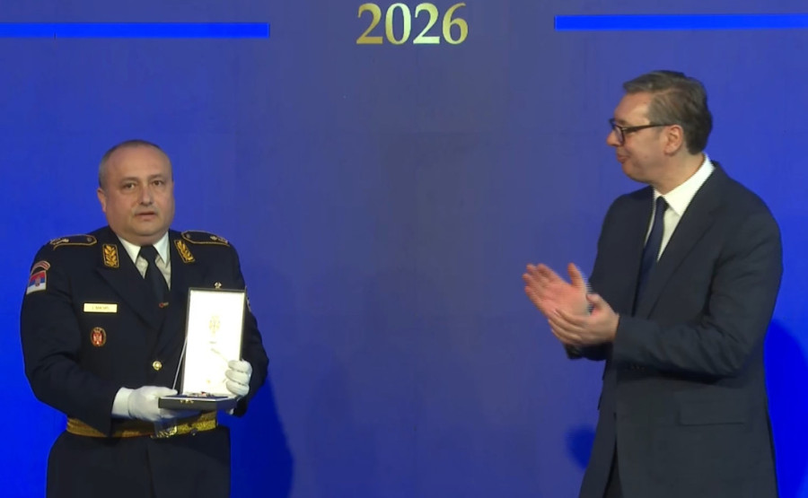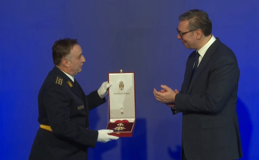 Predsednik Republike Srbije Aleksandar Vučić danas je u Palati Srbija u Beogradu svečano uručio odlikovanja zaslužnim pojedincima i institucijama povodom Sretenja - Dana državnosti Srbije.