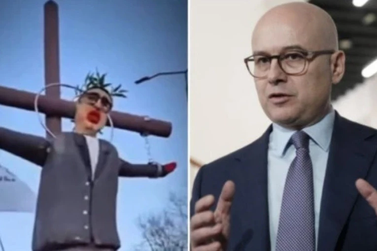 Lider SNS i savetnik predsednika za regionalna pitanja Miloš Vučević reagovao je na sramotan transparent na blokaderskom skupu u Nišu gde je predsednik Srbije Aleksandar Vučić prikazan kao razapet na krst.