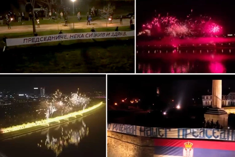 Povodom 50. rođendana predsednika Srbije Aleksandra Vučića, grupa omladinaca organizovala je sinoć u Beogradu simboličnu proslavu tokom koje su na Kalemegdanu istaknuti transparenti sa čestitkama, dok je nekoliko minuta trajao vatromet iznad Beograda na vodi.