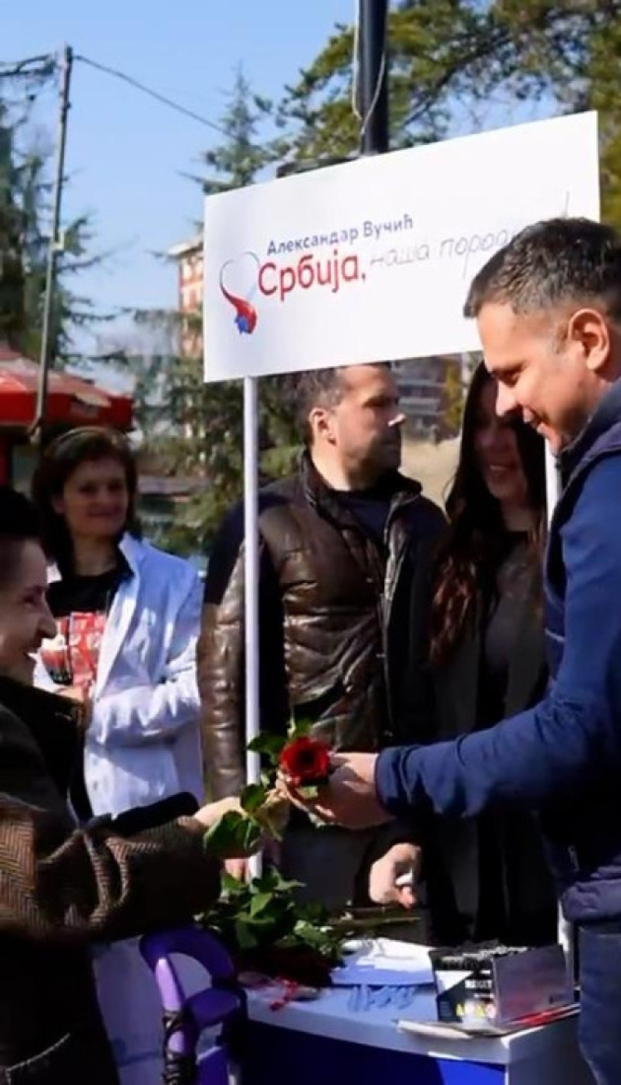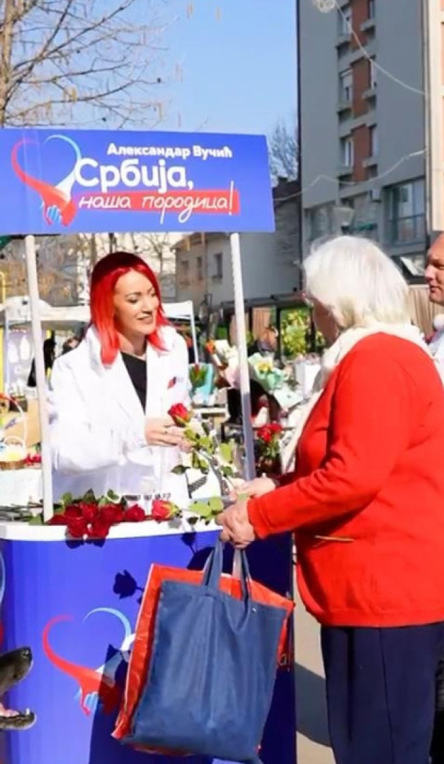 Čini se da nikad više štandova nije bilo u Beogradu, a članovi SNS Zvezdare i SNS Obrenovac sugrađankama su darivali cveće.