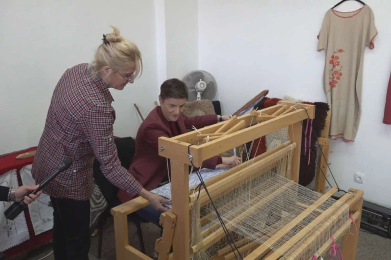 Nesvakidašnja slika: Ana Brnabić sela za stari razboj u Bajinoj Bašti - tradicionalno tkanje moramo sačuvati