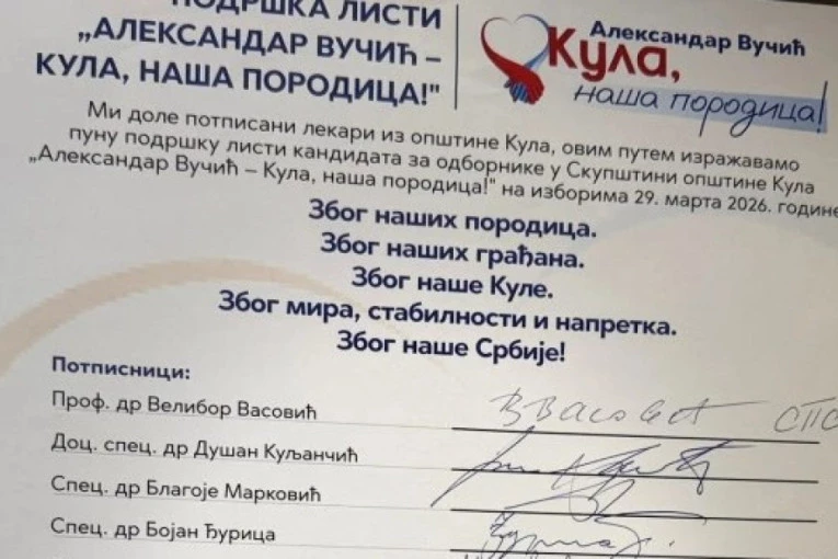 Čak 75 odsto lekara iz kulske opštine svojim potpisom stalo je uz listu "Aleksandar Vučić - Kula naša porodica", potvrđujući poverenje u njen program i pravac razvoja.