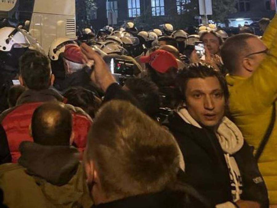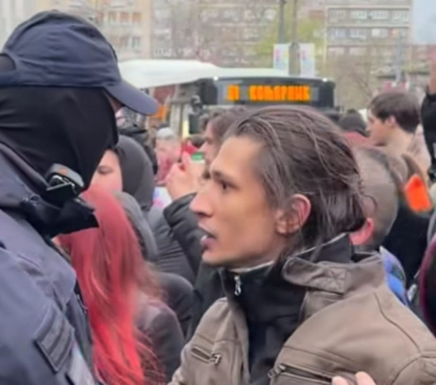 U pitanju je Strahinja Stojanović, maneken u pokušaju koji je redovan učesnik svih protesta, uvek u prvim redovima, uvek spreman na nasilje.