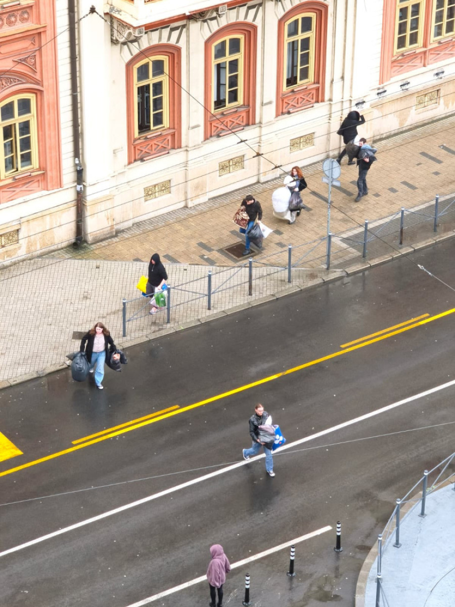 Kako se može videti na fotografijama i video snimcima, oni u plastičnim kesama nose stvari koje su držali u zgradi Rektorata.
