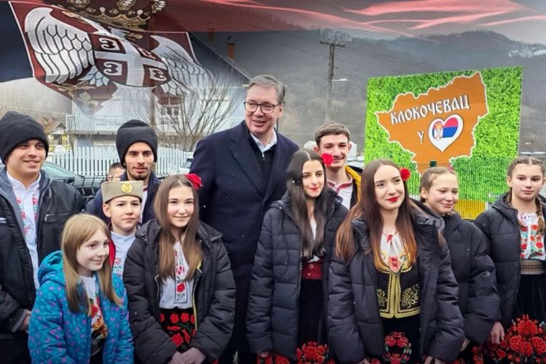 - Ljubav i ponos našeg naroda jača našu državu. Srbija, koliko god hteli da je slome, ide napred! - napisao je predsednik Vučić na fotografiji sa decom iz Klokočevca, gde je krajem februara obilazio crkvu Svetog cara Konstantina i carice Jelene.