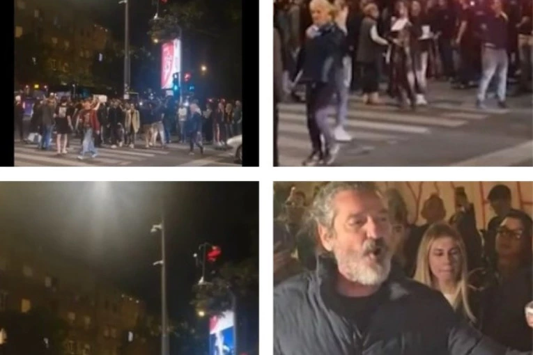 Na protestu je i glumac Dragan Jovanović koji je, kako je javio reporter Informera, navodno, pokušao da šutne jednog od simpatizera SNS.
