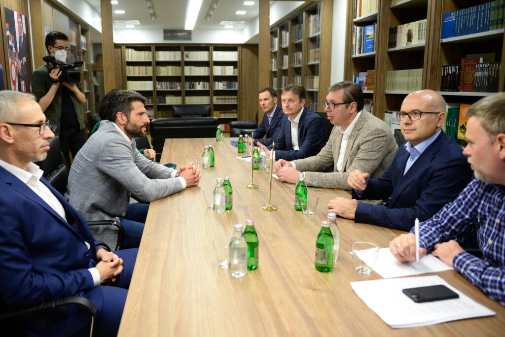 Sastanak delegacija u sedištu SNS završen je oko 18 časova, a sedište te stranke ubrzo posle Šapića napustio i predsednik Vučić koji je na pitanje o čemu su razgovarali kratko prokomentarisao “o mnogo čemu”.