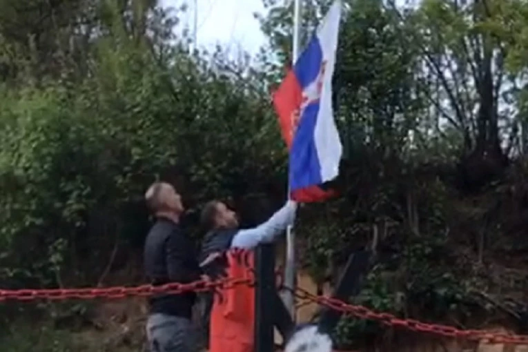 On je u društvu nekoliko saradnik skinuo srpsku trobojku u Končulju sa jarbola pored spomen obeležja Fatmiru Ibišiju, pripadniku terorističke OVK.