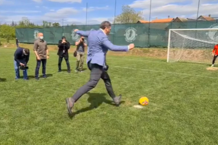 Predsednik Aleksandar Vučić danas je prilikom obilaska vakcinalnog punkta na stadionu FK Vrelo, pored Uba, izašao na teren lokalnog stadiona i pokazao zavidno fudbalsko znanje.