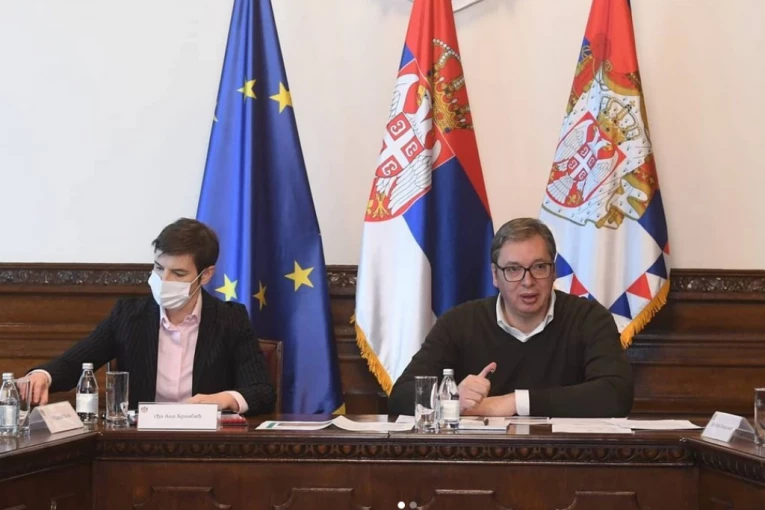 Predsednik Republike Srbije Aleksandar Vučić i predsednica Vlade Republike Srbije Ana Brnabić sastali su se sa predstavnicima zdravstvenih i drugih institucija koje učestvuju u borbi protiv koronavirusa.