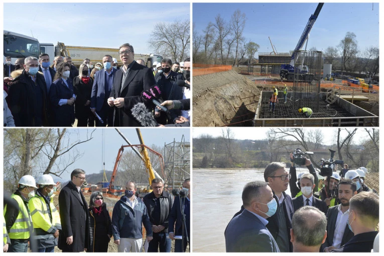 Predsednik Aleksandar Vučić danas obilazi radove na izgradnji mosta preko Južne Morave, na prvoj deonici Moravskog koridora od Pojata do Kruševca.