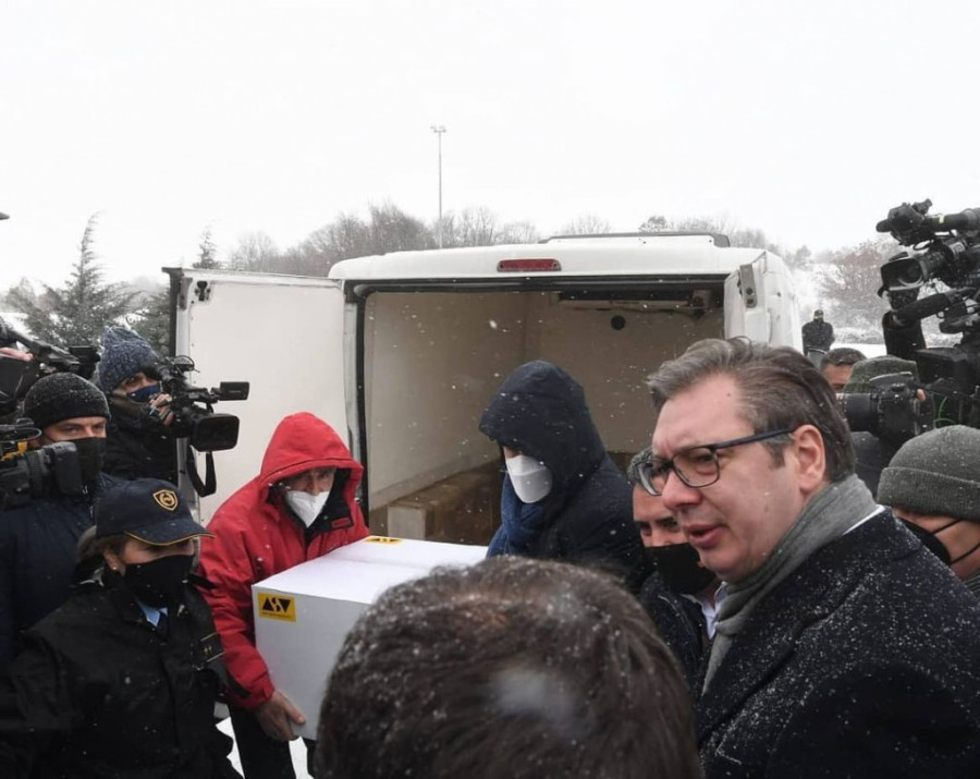 Predsednik Srbije Aleksandar Vučić uručio je danas predsedniku Vlade Severne Makedonije Zoranu Zaevu prvi kontingent vakcina koji Srbija donira toj zemlji.