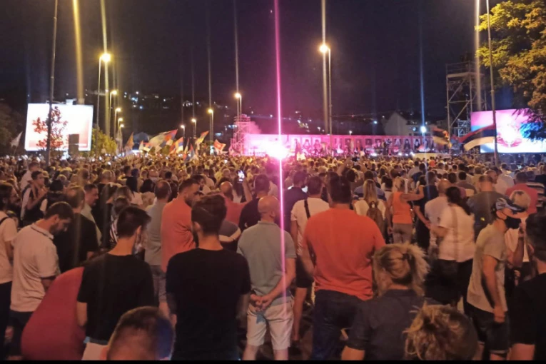 Okupljeni su nosili srpske, ali i crnogorske zastave i uzvikivali Dostojan!