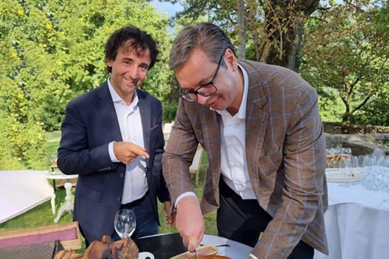 – Ovo pored mene je Tomaž Kavčić, počasni konzul Srbije u Sloveniji. Nalazimo se u njegovom restoranu Zemono, svakako jednom od najboljih mesta u regionu. Pošto sam ja organizator večere i domaćin Zoranu Zaevu i Ediju Rami ovde u Zemonu, uz Tomijevu pomoć moram sve dobro da pripremim, a ova mangulica u hlebu je poseban specijalitet – napisao je Vučić uz fotografiju iz restorana.