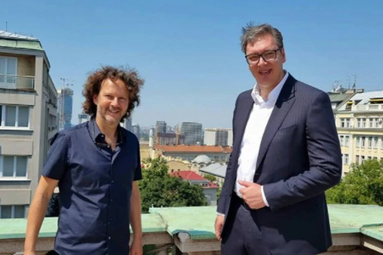 Predsednik je na Instagram nalogu “buducnostsrbijeav” objavio zajedničku fotografiju sa Bergmanom i objasnio značaj dolaska velikih zvezda svetske kinematografije u Beograd.