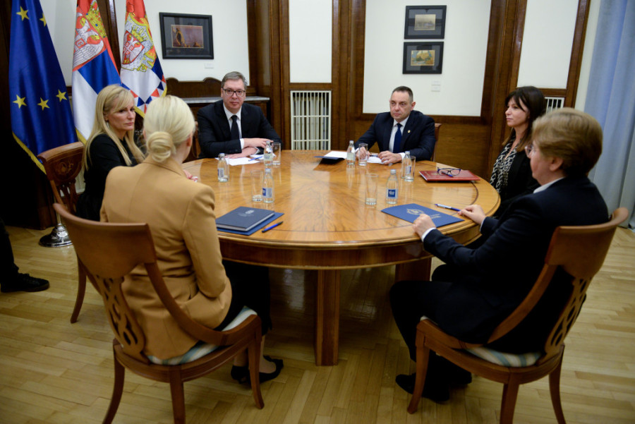 Predsednik Republike Srbije Aleksandar Vučić razgovarao je danas sa ministrom unutrašnjih poslova Aleksandrom Vulinom, državnim sekretarom Ministarstva pravde Bojanom Šćepanović, Republičkim javnim tužiocem Zagorkom Dolovac i Tužiocem za ratne zločine Snežanom Stanojković o međunarodnoj saradnji, a naročito o unapređenju postojeće saradnje sa nadležnim organima Bosne i Hercegovine u procesuiranju ratnih zločina i njihovih izvršilaca na teritorijama naših zemalja.