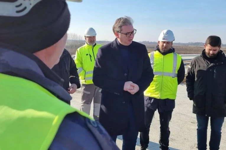 Predsednik Srbije Aleksandar Vučić bio je prvo na mostu na Savi, na putu za Gornje Nedeljice, gde je razgovaroa sa radnicima i obilazi radove na ovoj deonici.