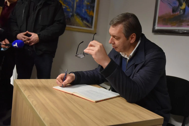 Predsednik se potom upisao u Knjigu utisaka Javne biblioteke u Doljevcu.