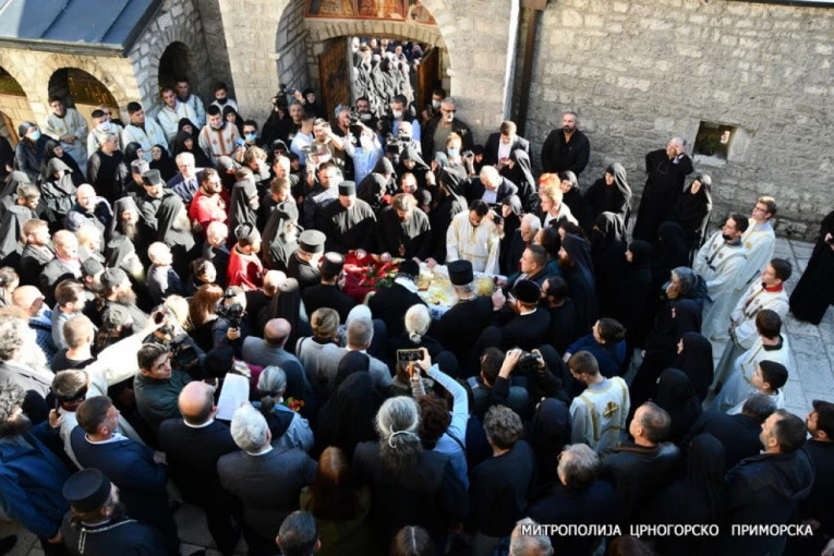Kovčeg je u Hram dopremljen iz Cetinjskog manastira, gde je jutros održana liturgija, a potom i mimohod građana.