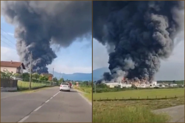 Velika vatra je zahvatila fabriku, a crni dim se vidi kilometrima daleko.