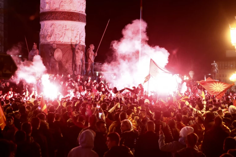 Protest protiv prihvatanja francuskog predloga da se ukine bugarski veto i otvore pregovori za članstvo Severne Makedonije u EU organizovan ispred zgrade Vlade u Skoplju, javljaju makedonski mediji. Ne treba nam Evropa ako moramo da se asimilujemo, poručuje lider VMRO-DPMNE.