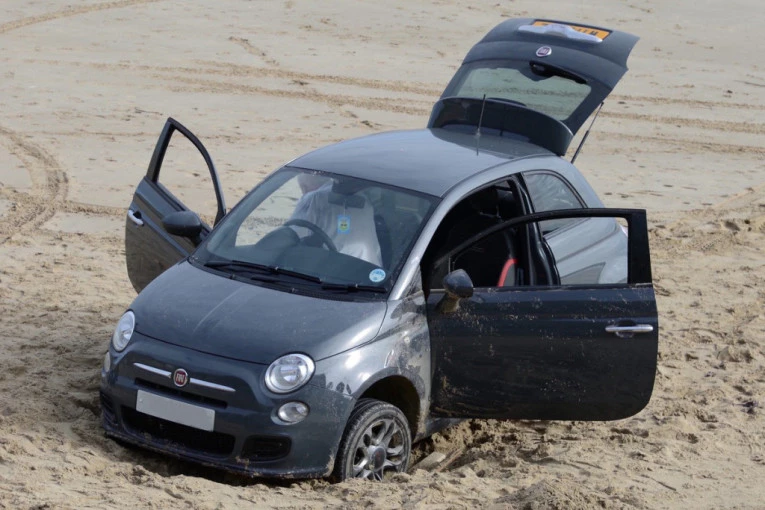 Na stranici "Uživo sa slavonskih saobraćajnica" jedan pratilac je objavio fotografije automobila marke "fijat punto" zaglavljenog na plaži.