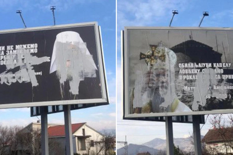 U Cnoj Gori su obnovljena dva oskrnavljena bilborda sa likovima patrijarha Irineja i mitropolita Amfiolohija.