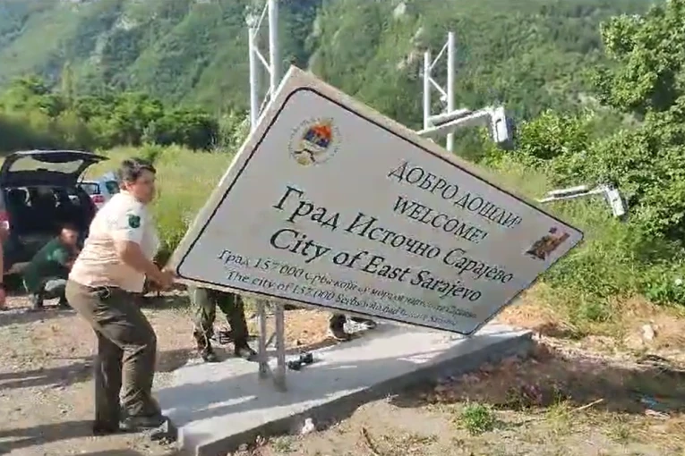 Kantonalne vlasti u Sarajevu jutros su uklonile jednu od tabli sa natpisom "Dobrodošli u Istočno Sarajevo, grad 157.000 Srba koji su morali napustiti Sarajevo", nakon što je navodno ustanovljeno da se nalazi na području entiteta Federacija BiH.