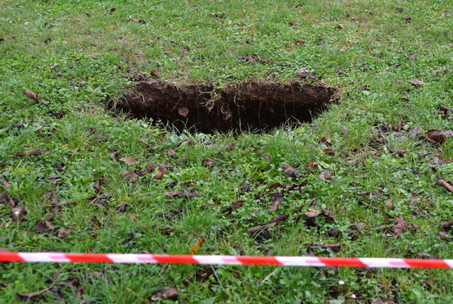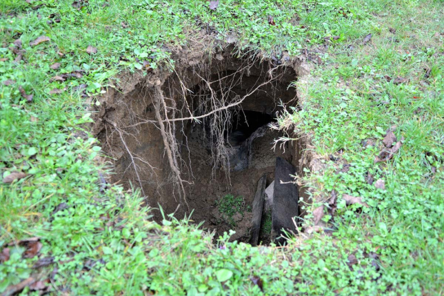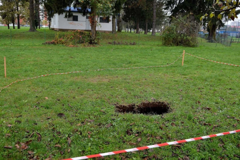 Na livadi u Grabriku, kod Karlovaca u Hrvatskoj, tokom prošle noći otvorila se nekoliko metara duboka rupa, poput bunara s tunelom, koja je trenutno ograđena trakama, a njeno pojavljivanje uznemirilo je građane, pa je naložena hitna sanacija.