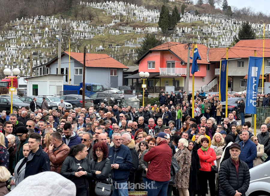 Na hiljade ljudi došlo je danas ispred Komemorativnog centra Tuzla da pruži podršku porodici ubijene Amre Kahrimanović, izjavi saučešće, klanja dženazu i isprati je na posljenji počinak na mezarju Bukovčići.
