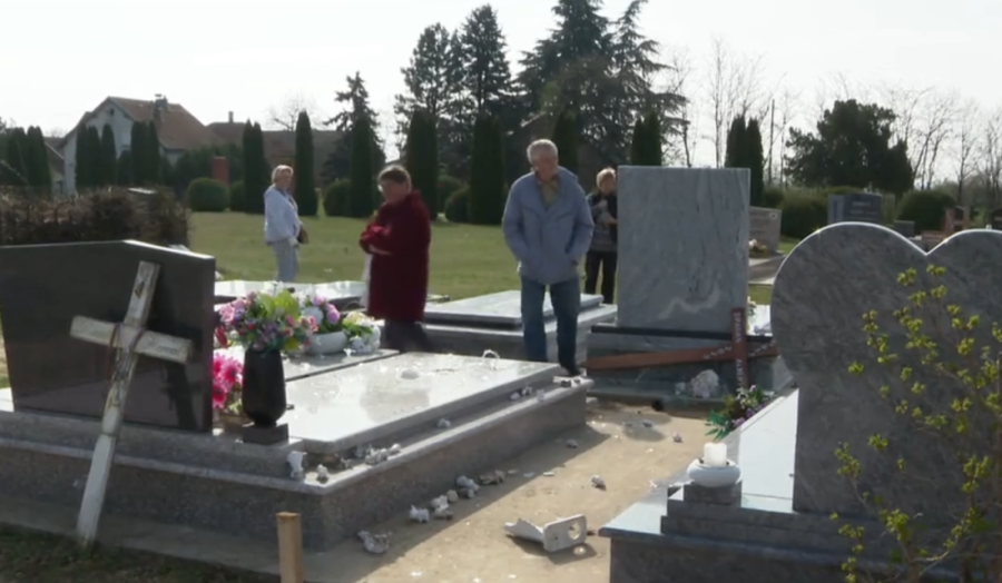 Nakon policijskog uviđaja koji je u četvrtak obavljen na erdutskom groblju utvrđeno je da su u sredu na 65 grobova razbacani i razbijeni cvetni aranžmani, stakleni lampioni, ukrasne vaze i figure, sveće i tri drvena krsta, prenosi Hina.