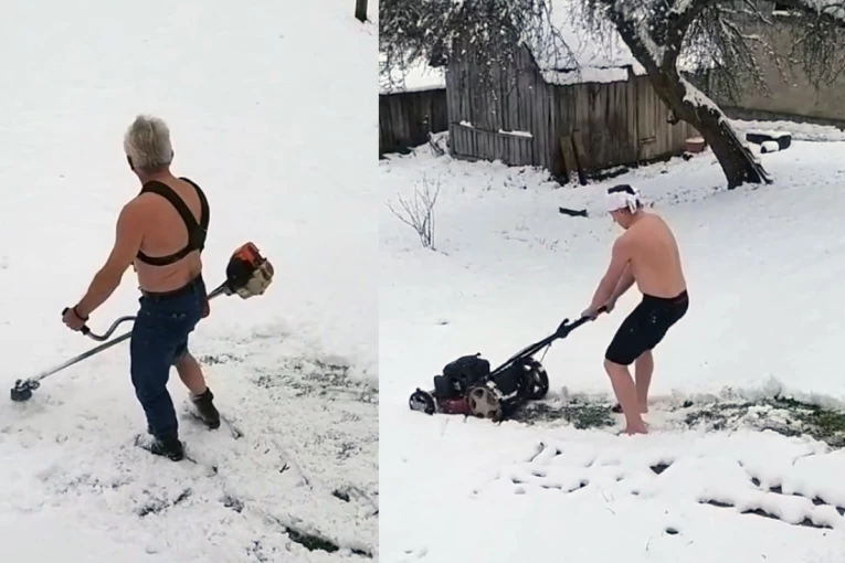 Naime, na Facebook stranici "Užice, oglasna tabla" osvanuo je snimak na kojem se vidi kako trojica muškaraca goli do pojasa guraju kosilice za travu kroz sneg.