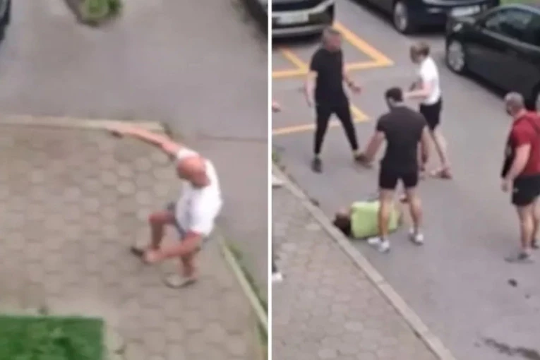 Na snimku koji je objavio portal 24ur, vidi se kako grupa nasilnika tuče muškarca u zelenoj majici, koji leži na tlu