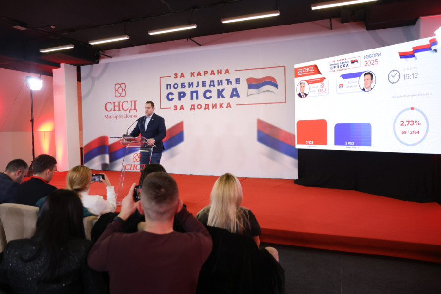 "Razlika u glasovima je skoro 10.000 glasova. Ovo je velika pobeda. Ovaj rezultat je dokaz da vlast ima podršku naroda. Čestitam Siniši Karanu na izboru za predsednika Srpske", poručio je Dodik u izbornom štabu SNSD na kraju izbornog dana.