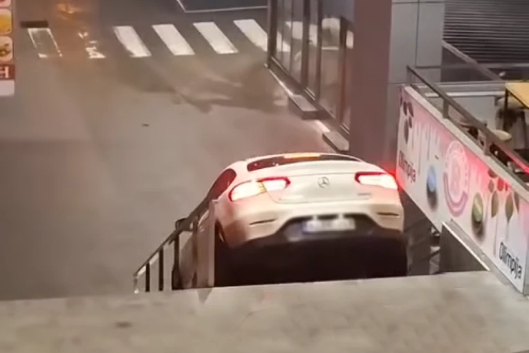 Bahati vozač se mercedesom spustio niz stepenice banjalučke pijace! (VIDEO)