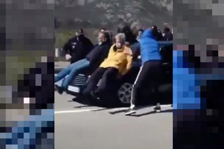 Okupljeni su se u pokušaju da spreče prolazak vozila, popeli na službeno vozilo