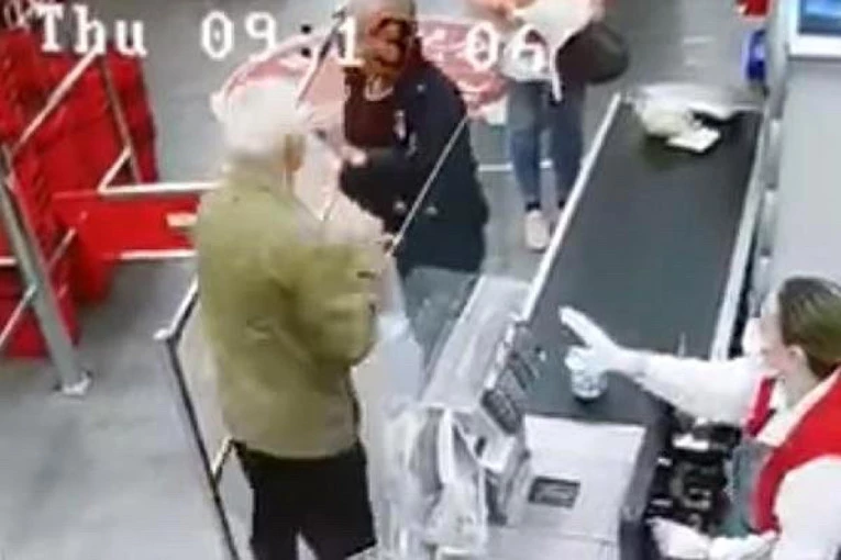 Društvenim mrežama se vrtoglavom brzinom proširio snimak sa nadzorne kamere na kojem se vide dva starija muškarca kako se tuku na blagajni supermarketa u Osijeku.