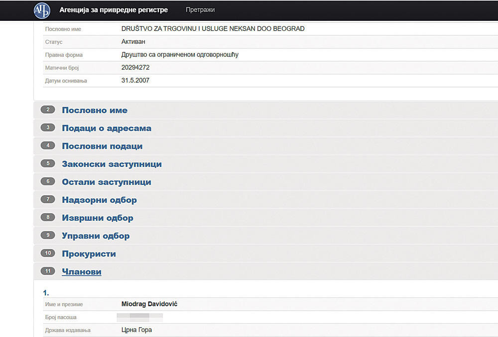 Na sajtu APR navodi se da je jedini vlasnik firme Društvo za trgovinu i usluge „Neksan d.o.o.“ Beograd Miodrag Davidović, a pored je naveden i broj njegovog (crnogorskog) pasoša. Ipak, kako piše Kurir, pozivajući se na neimenovane izvore, na toj adresi je bila kuća porodice Šijaković i oni su verovatno ušli u tu priču dajući zemljište za objekat koji se gradi. Bogoljub Šijaković je, inače, rođeni Nikšićanin, pa ne treba zanemariti ni tu vezu.